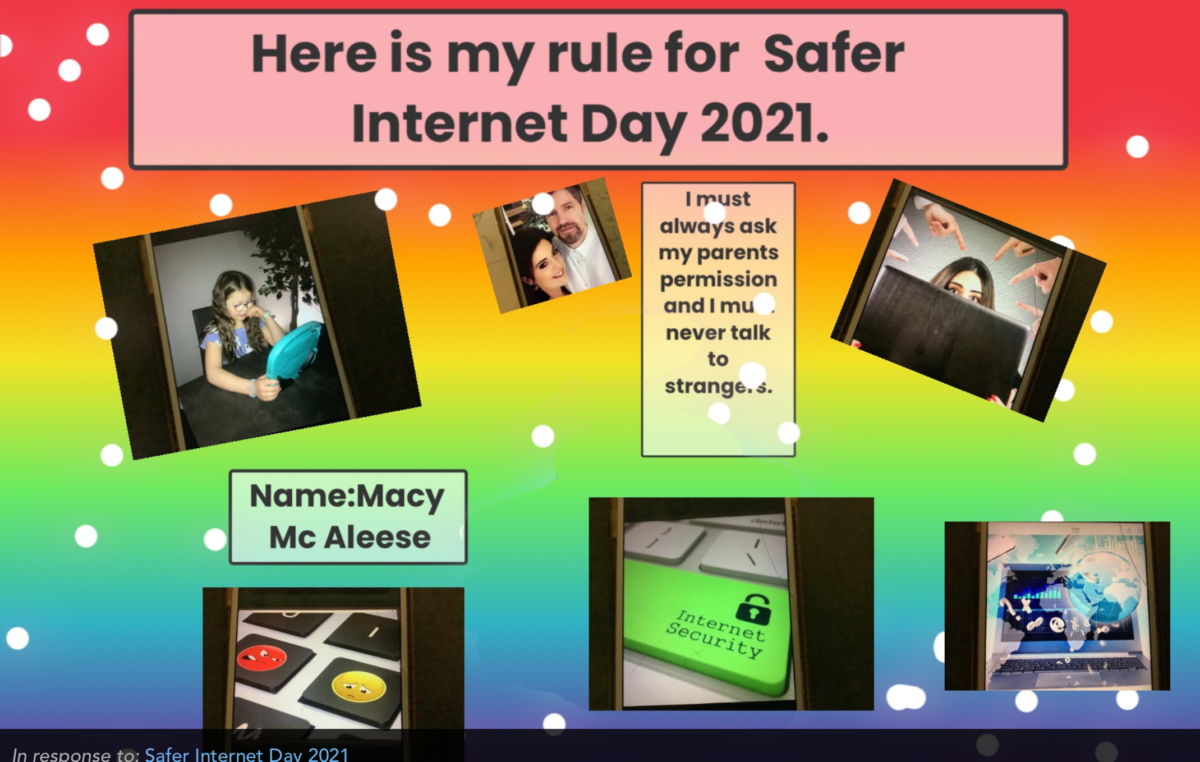 Children you have worked very hard this week on Internet Safety Day. You have created fabulous posters, recipes for a Safer Internet, PowerPoints and pieces of writing looking at different scenarios and what you would do if any of these situations happened to you.