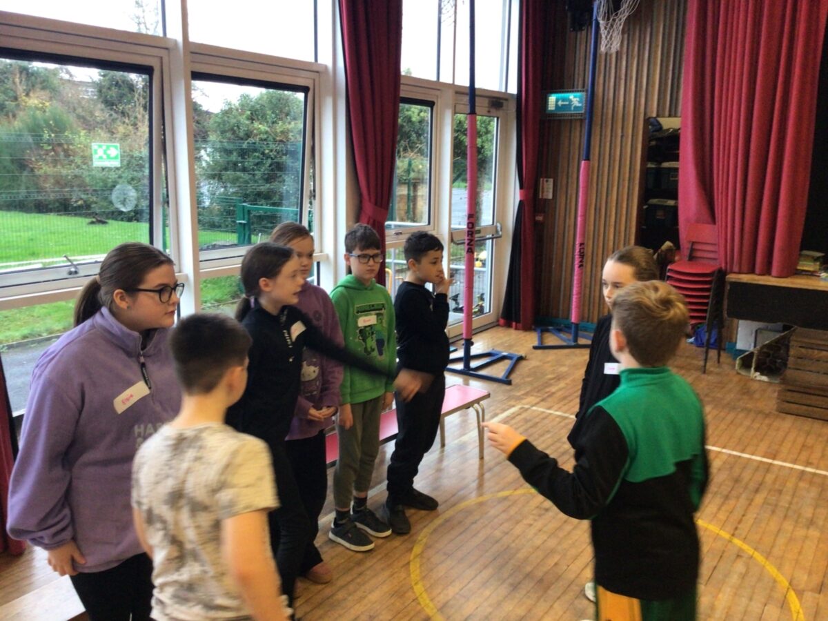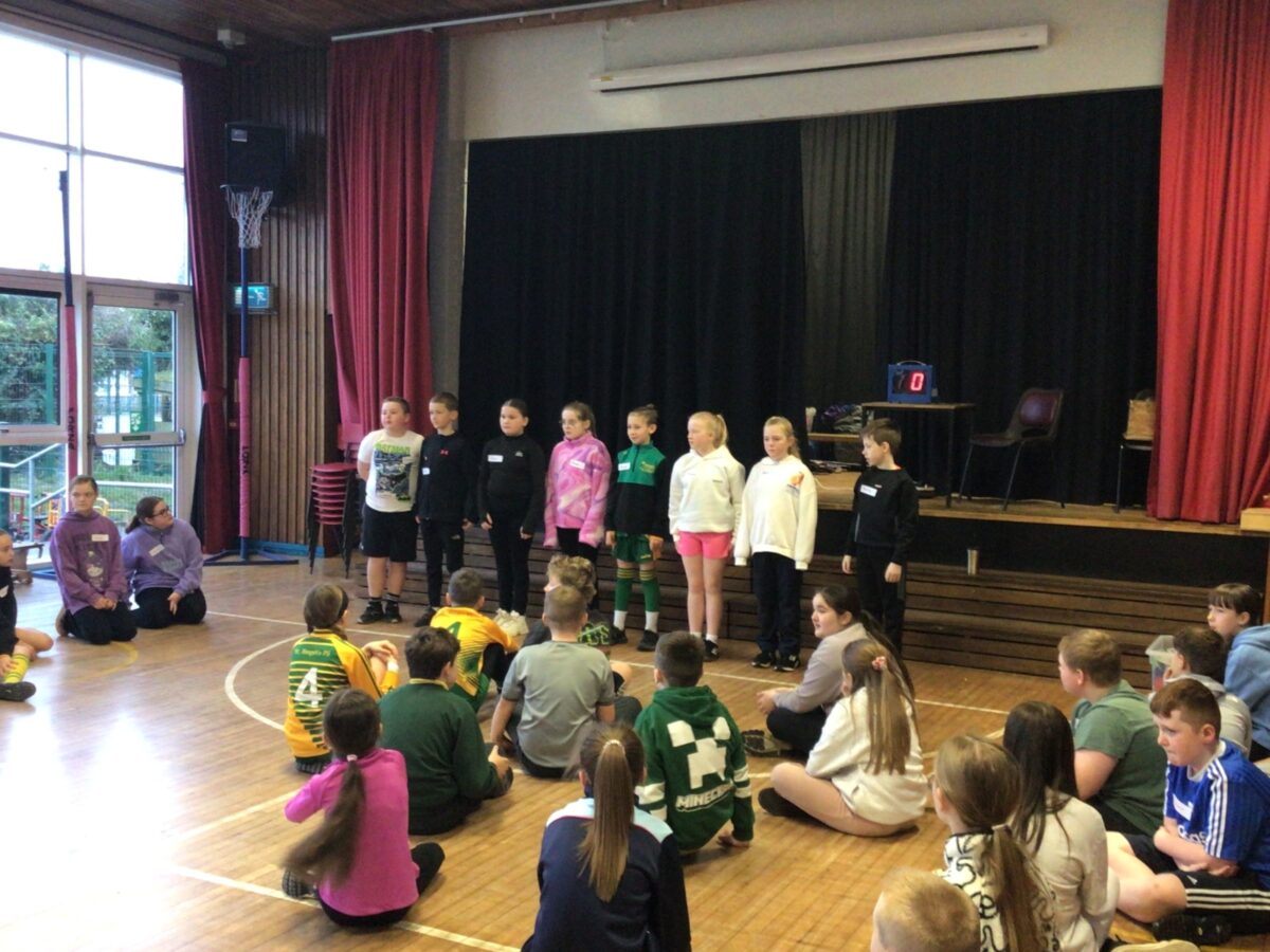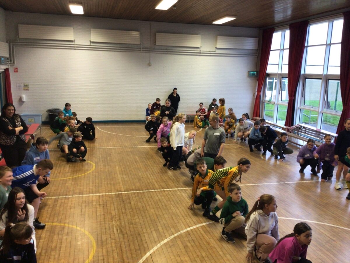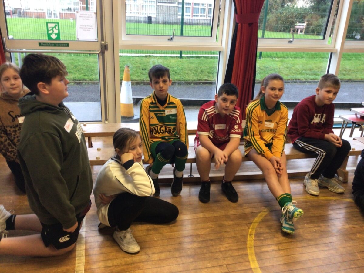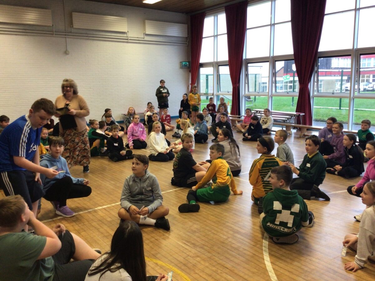 We welcomed Leaney P7s to St. Brigid’s for some ice-breaker games and had great fun playing OGNIB, which is our version of ‘Backward Bingo’! The children had such fun hoping their number wasn’t called out!! We also enjoyed a variety of sport-based activities together – hockey, netball, volleyball and ‘Where’s Me Troosers’! The children had a fantastic morning.