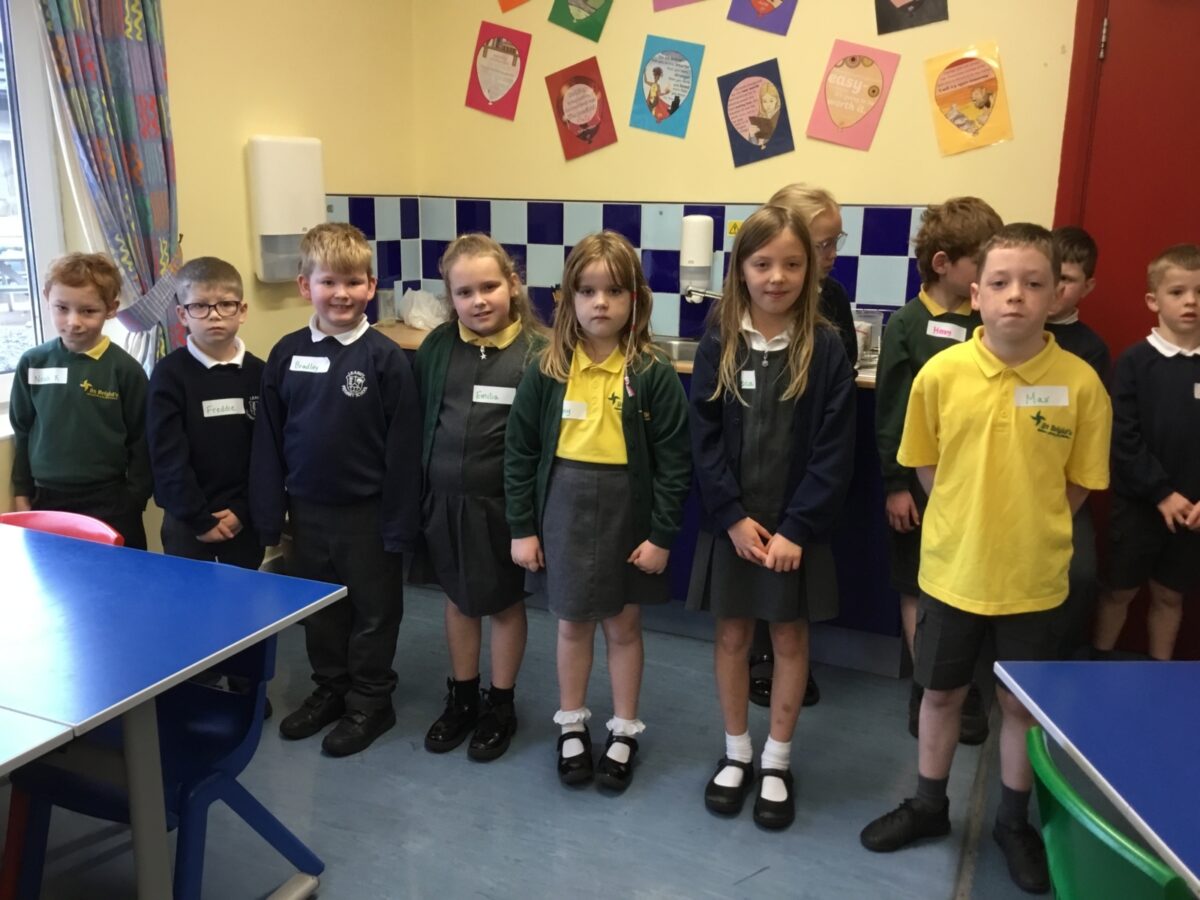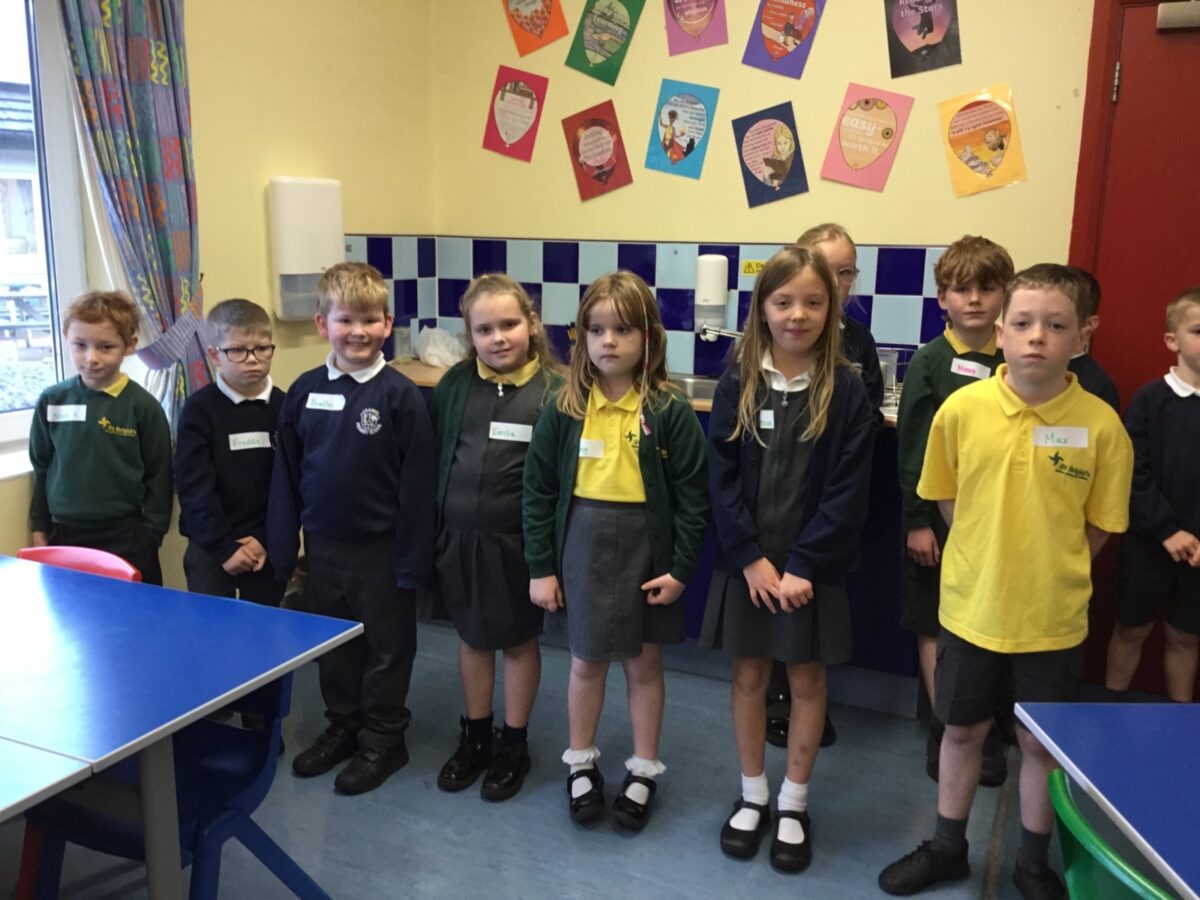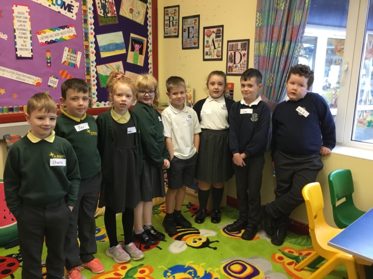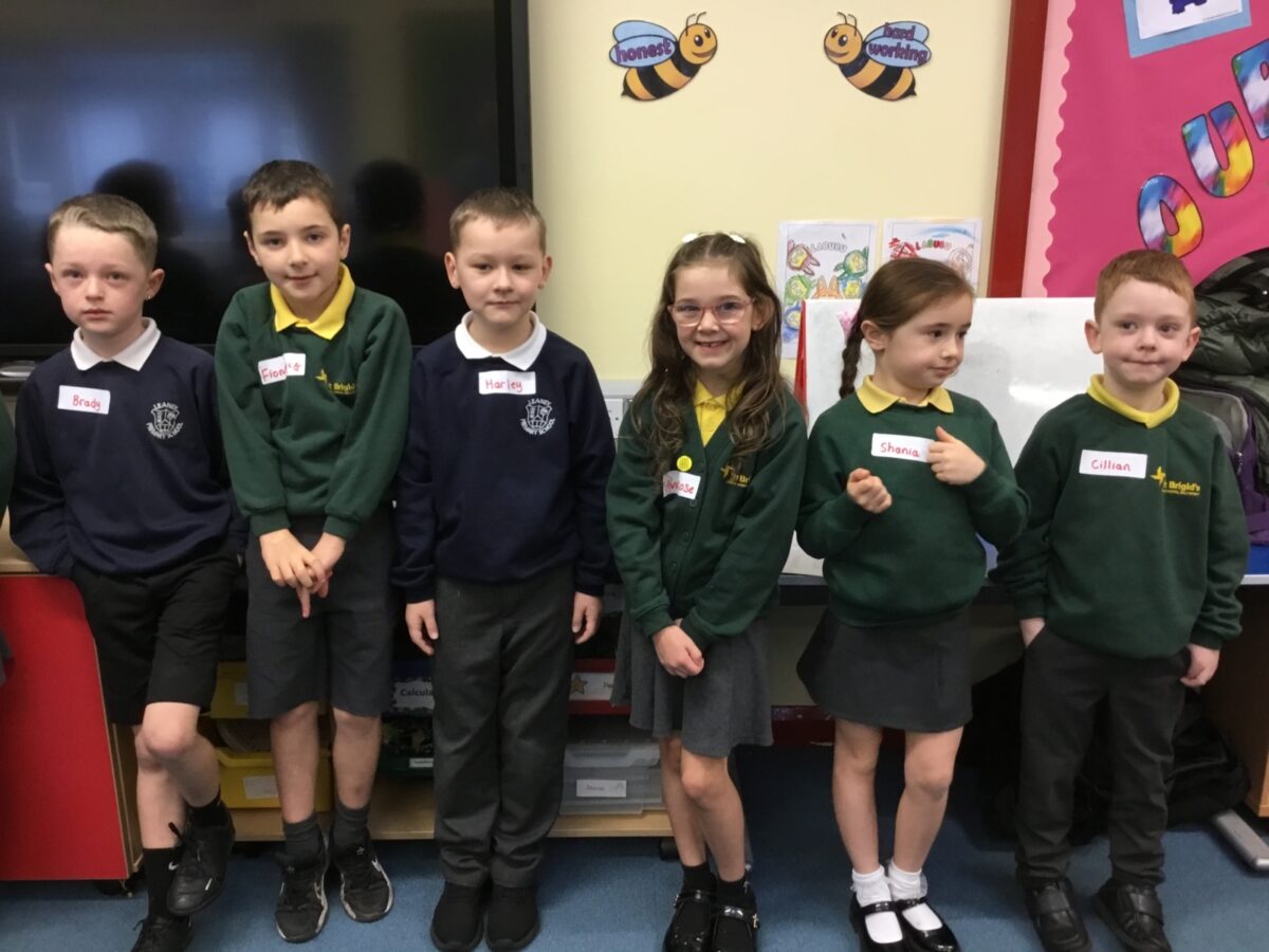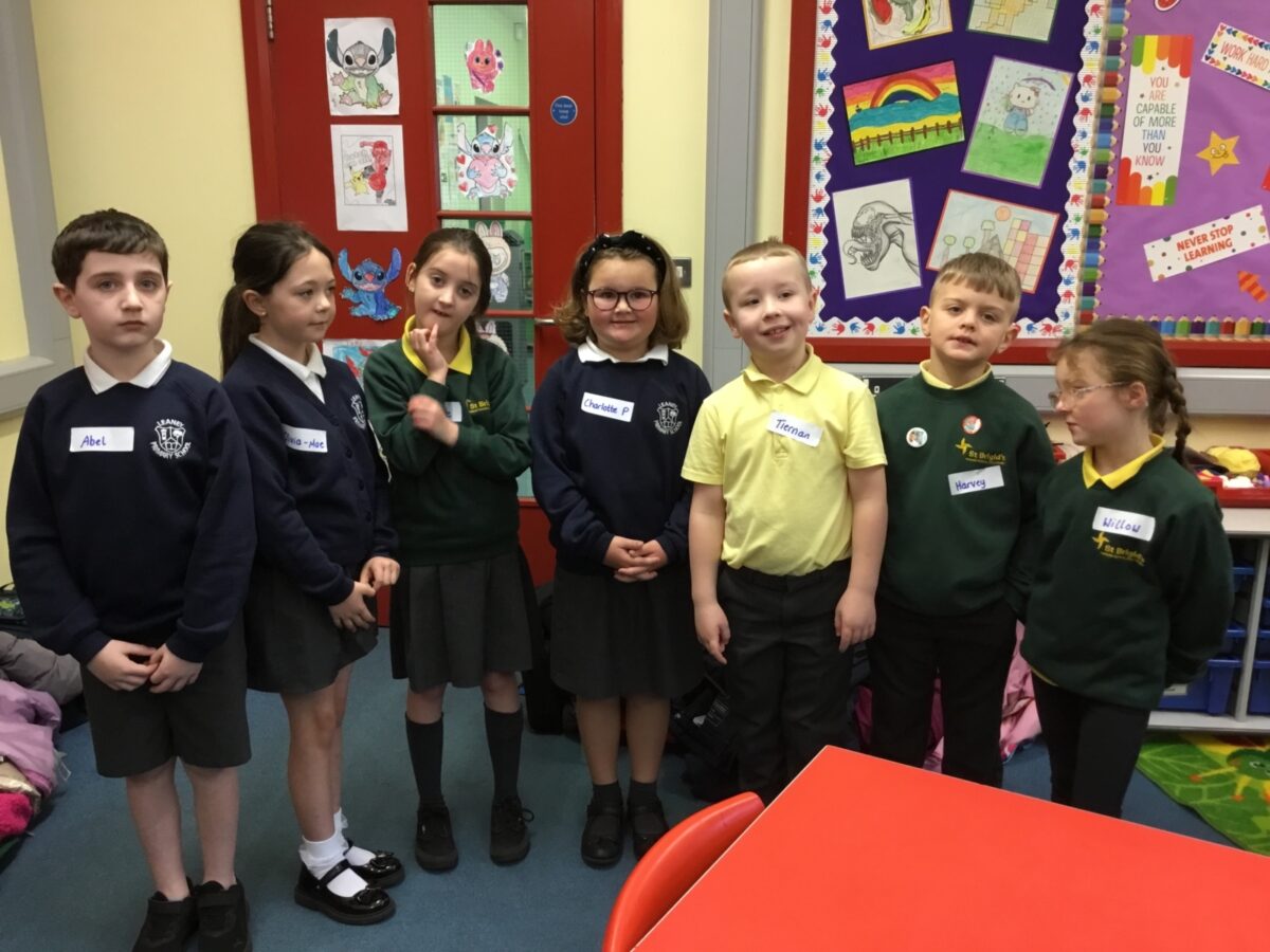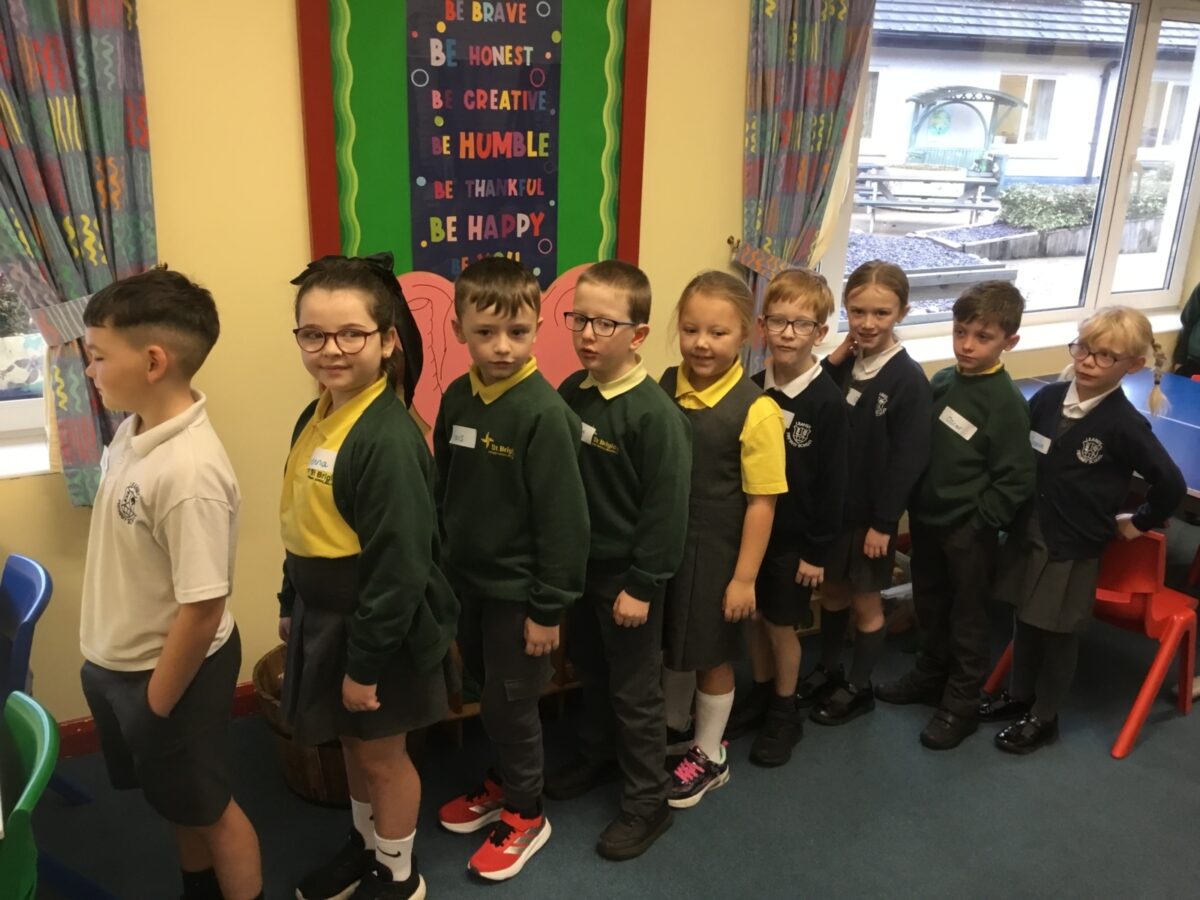 We welcomed Leaney P7s to St. Brigid’s for some ice-breaker games and had great fun playing OGNIB, which is our version of ‘Backward Bingo’! The children had such fun hoping their number wasn’t called out!! We also enjoyed a variety of sport-based activities together – hockey, netball, volleyball and ‘Where’s Me Troosers’! The children had a fantastic morning.