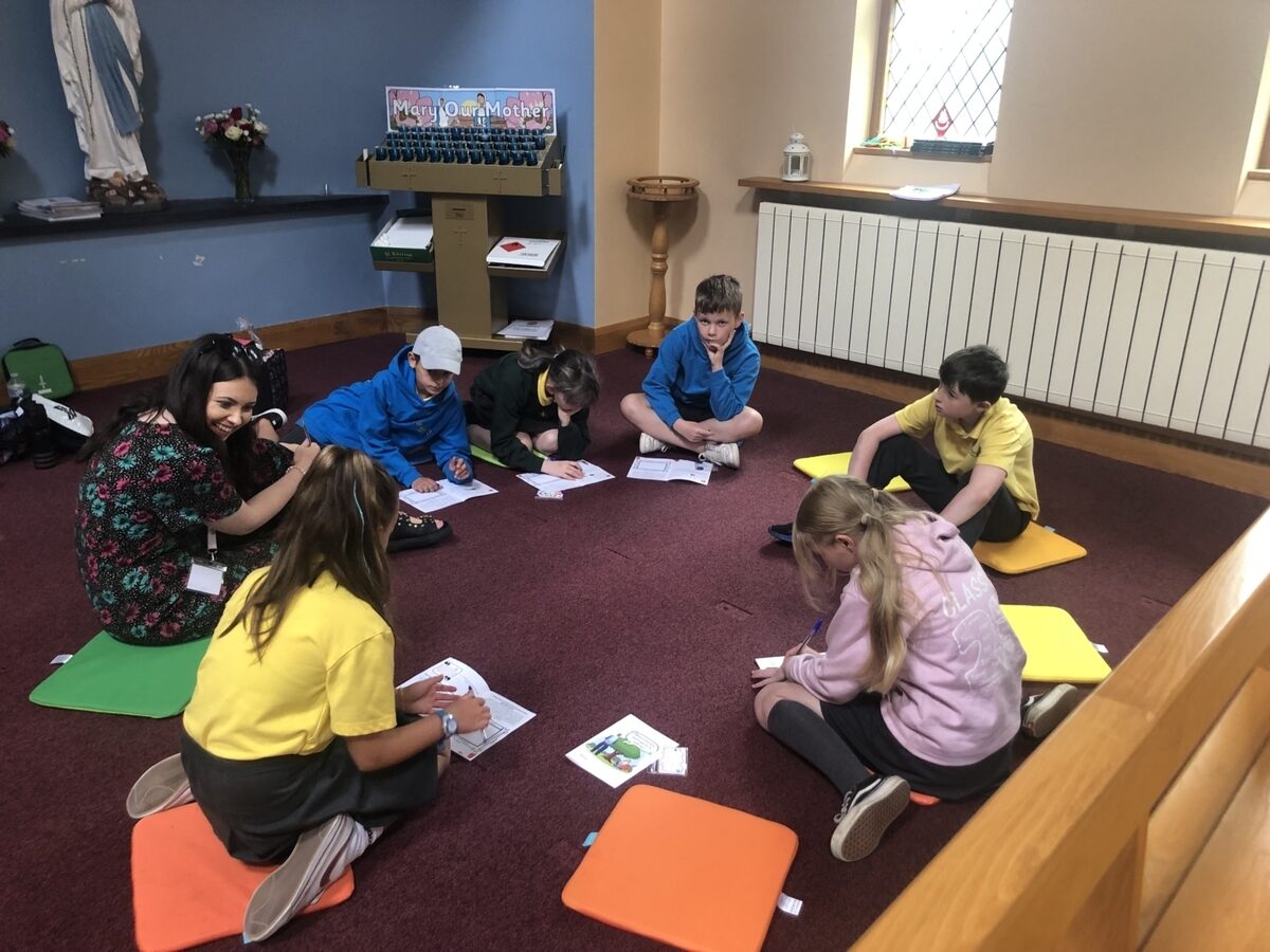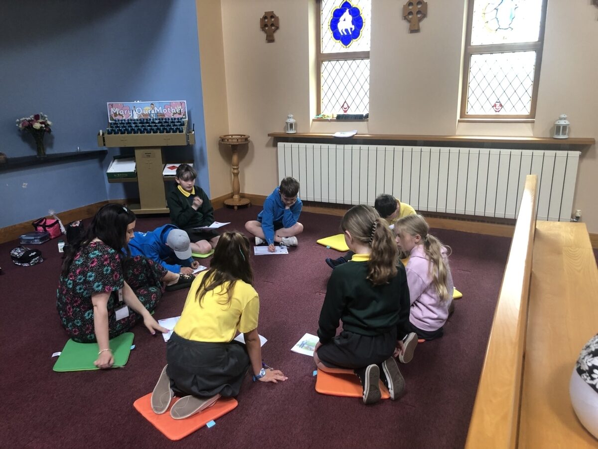 Primary 7s enjoyed a relaxing, engaging, reflective day in Our Lady & St. John the Evangelist church, facilitated by Martina and Grace, our group leaders. We reflected on our recent sacrament of Confirmation, our roles and responsibilities in school as P7s, our personal qualities and our special gifts and talents. We engaged in a range of activities including art and drama and, as it was a beautiful day, we played outside in the sunshine together.